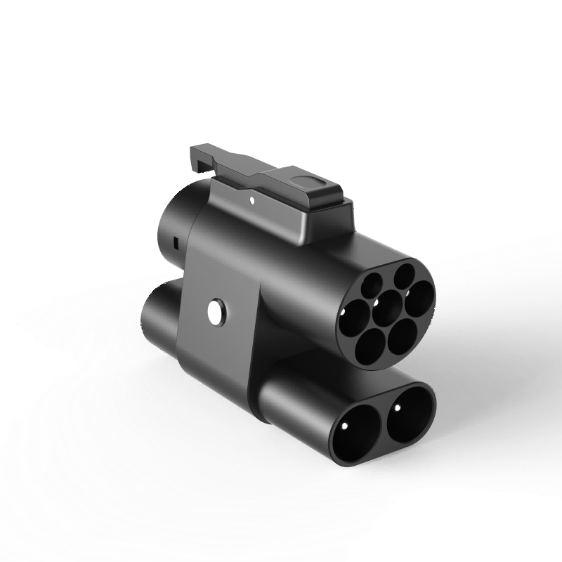• The charger side (CCS2) also locks in place once the adapter is connected and the vehicle confirms charging, securing the CCS2 plug and preventing unintended disconnections or theft.